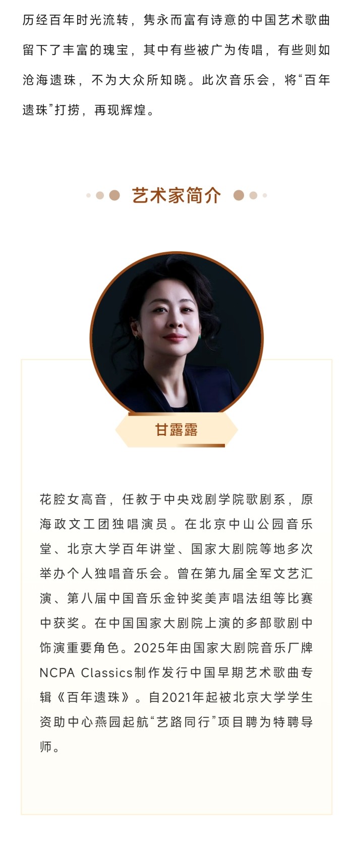 百年遗珠-甘露露与张佳林呈现中国早期艺术歌曲音乐会-泉州站