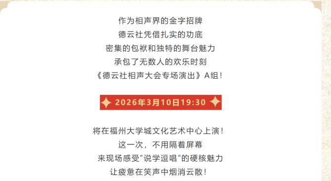 演出时间  2026.3.10 演出场馆  福州大学城文化艺术中心