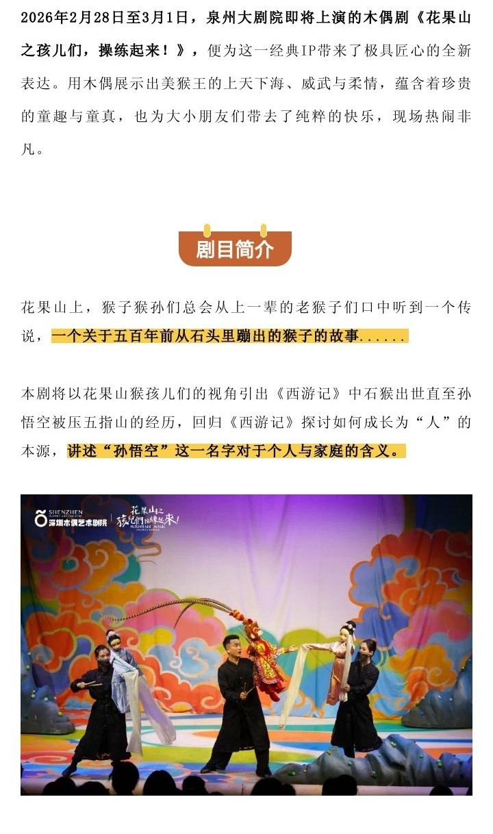 【泉州】木偶剧《花果山之孩儿们,操练起来!》-泉州站
